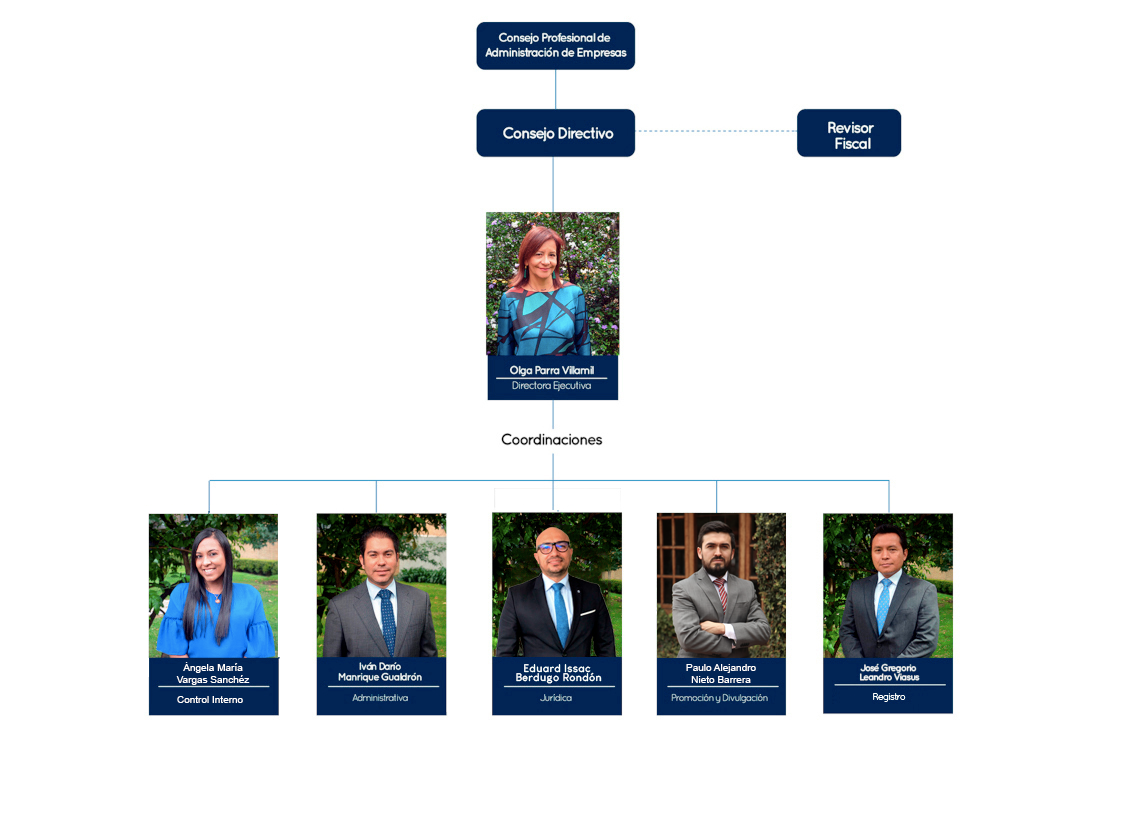 Coordinación de Registro: Dirige y controla el proceso de registro y otorgamiento de la tarjeta y matrícula profesional para el ejercicio de la Profesión de Administración de Empresas y Administración de Negocios y demás denominaciones aplicables.